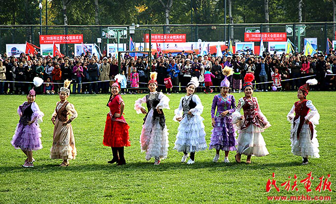 中央民族大學(xué)哈薩克語(yǔ)言文學(xué)系學(xué)生表演哈薩克族舞蹈