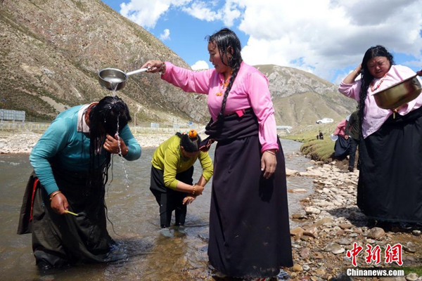 每年的夏末秋初,藏族同胞迎來一年一度的“沐浴節(jié)”?!般逶」?jié)”,藏語稱為“嘎瑪日吉”,為期7天。這項古老習(xí)俗已經(jīng)延續(xù)了800多年。西藏流傳民謠,“待到棄山星升起,清凈溫暖好沐浴?!币簿褪钦f,在“棄山星(金星)””照亮雪域高原的七天里,藏族民眾在星光照耀過的水流中沐浴,可祛除身體病痛、心理雜念,全年健康。