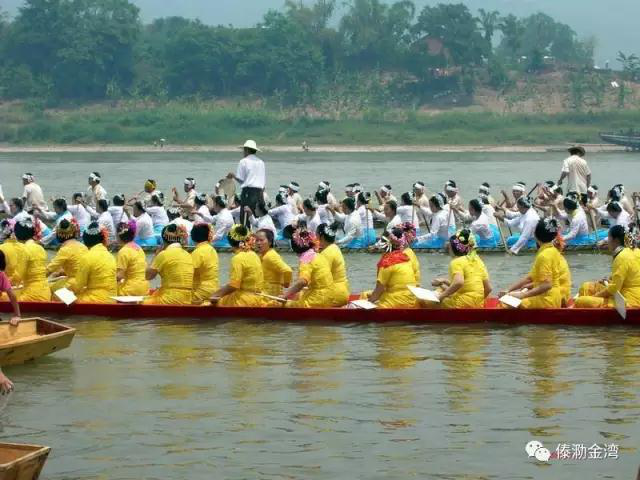每年的潑水節(jié),西雙版納傣族都要舉行橫渡瀾滄江的賽龍舟活動(dòng)。一般在潑水節(jié)的第一天舉行。比賽時(shí),江上停泊著披綠掛彩的龍船,船上坐著數(shù)十名精壯的水手,船中間站立1人擊鑼指揮,號(hào)令一響,整裝待發(fā)的龍船像箭一般往前飛去,在規(guī)定的范圍內(nèi),哪一隊(duì)先到達(dá)目的地為勝。