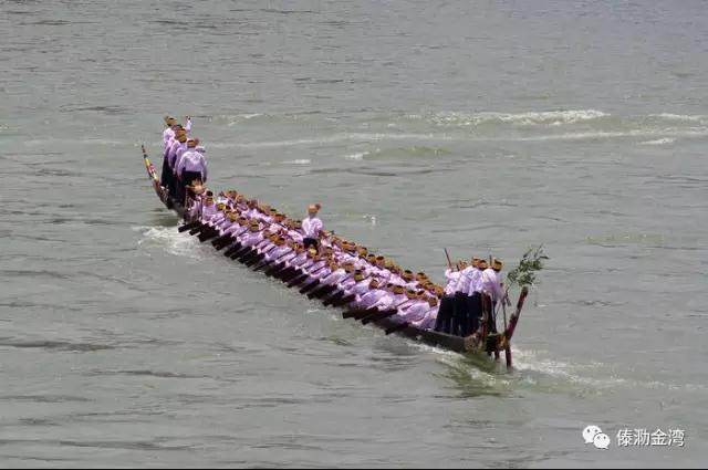 此外,最耀眼的還是女子龍舟隊(duì)。她們的龍舟比男隊(duì)的更華麗,船身涂黃色的龍鱗,龍頭上伸出兩對(duì)長(zhǎng)而彎曲的象牙,栩栩如生。