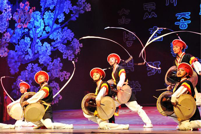其實(shí)朝鮮族的打擊樂發(fā)展歷史源遠(yuǎn)流長。我國民族打擊樂眾多,特征各異,各民族的打擊樂特征又連接著本民族的其他音樂。朝鮮族音樂文化的產(chǎn)生與發(fā)展相當(dāng)古老,朝鮮族打擊樂與音樂形式多種多樣,有各種類型,如“盤坐式四物樂”、“游走式四物樂”、“立鼓”等等,而四物樂是朝鮮族具有代表性的打擊器樂組合之一。