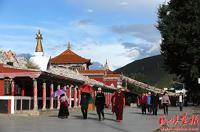 黃昏的嘉那嘛呢石經(jīng)城,當?shù)剞D(zhuǎn)經(jīng)人和來自各地的游客