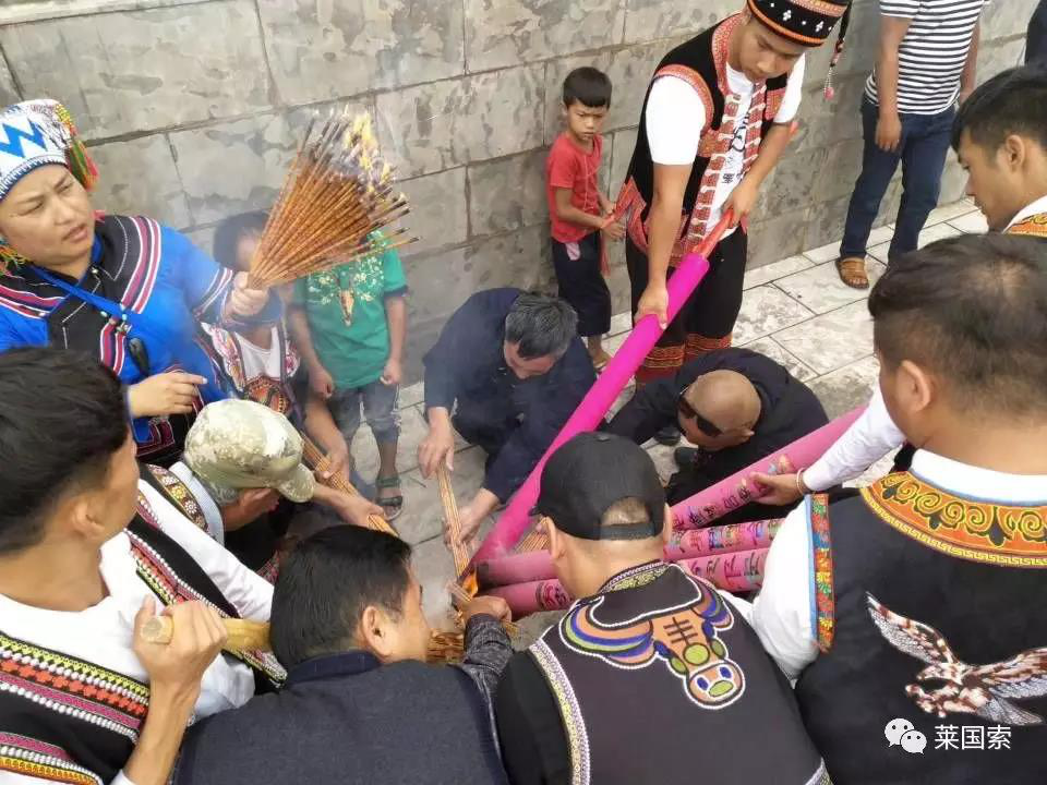 祭祖大典隆重、肅敬、莊嚴(yán)。儀式: 1、吹奏長(zhǎng)號(hào)樂(lè)、鳴禮炮,敬告天地東西南北中五方神抵;2、奏樂(lè)(長(zhǎng)號(hào)、噴吶),請(qǐng)彝族畢摩上香;3、奏樂(lè)(長(zhǎng)號(hào)、噴種),敬貢三牲,果品,圣水,豬頭,雞;4、請(qǐng)彝族畢摩撒五谷,念誦《散五谷詞》;5、彝族畢摩向祖先阿普駕幕行跪拜禮,恭誦《祭祖祈福經(jīng)》;6、請(qǐng)各地同胞代表恭誦《祭文》;7、請(qǐng)各位領(lǐng)導(dǎo)、各位來(lái)賓、各位朋友全體起立!向彝族祖先阿普篤幕及六祖行叩首禮:一鞠躬!再鞠躬!三鞠躬!禮畢!8、奏樂(lè)(長(zhǎng)號(hào)、噴吶),恭請(qǐng)貴賓敬獻(xiàn)高香。