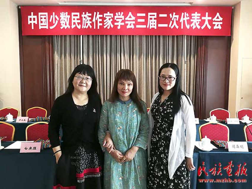 帕蒂古麗(中)出席中國少數(shù)民族作家學(xué)會(huì)第三屆二次代表大會(huì)