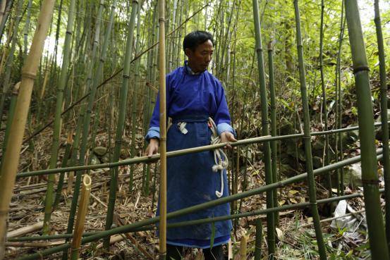 發(fā)音跟笙管的長短有關(guān)系,它必須要配對。如這是六拳的,這一管必須和這一管關(guān)節(jié)是一樣的,所以它們聲音都是一樣的。差一點(diǎn)可以,不能差太多。有時(shí)也找不出來。山上長出來的(竹子)不可能完全都是一致的。比如這一對就挺合適的。這一管和這一管是一樣的。不長不短,它的和音就比較好。