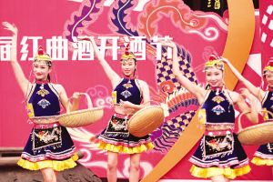 龍峰村“紅曲酒開酒節(jié)”上的畬族歌舞表演。黃宗治攝