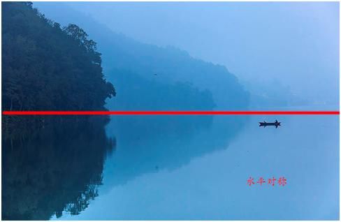 除了縱向?qū)ΨQ,還有水平對(duì)稱。水平對(duì)稱,一般適合拍攝上下對(duì)稱的題材,比如說水面的倒影。在太陽還沒出來的時(shí)候,已經(jīng)有亮光的時(shí)候,天空呈現(xiàn)出一種藍(lán)調(diào),水面又沒有高光,一切都是那么的寧靜,因?yàn)樗{(lán)色是讓人很安靜的一種顏色,很舒服。如果你看到了這時(shí)候水面的景色,倒影還不錯(cuò)的話,不妨采用這種方式。