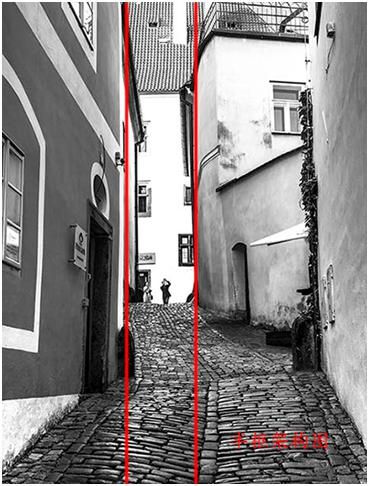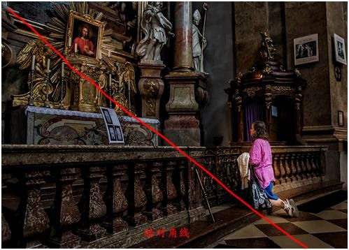 我們看到下面這張圖也是以對(duì)角線的構(gòu)圖形式,只不過這個(gè)對(duì)角線從畫面中明顯的看不出它是一個(gè)對(duì)角線,而是畫面中一些重要元素形成的一個(gè)對(duì)角線趨勢(shì),我們暫且把它稱之為暗對(duì)角線。