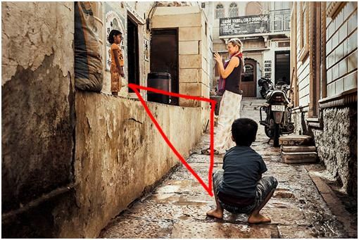 三角形構(gòu)圖也是一個(gè)應(yīng)用起來比較有難度和復(fù)雜的構(gòu)圖形式,可以用于建筑、環(huán)境人像、人文、街拍或者一些比較有故事的場(chǎng)景。這種時(shí)候,往往需要多個(gè)陪體來襯托主體,運(yùn)用好三角形構(gòu)圖是一個(gè)不錯(cuò)的選擇。