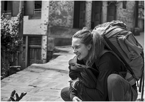 這張圖是在尼泊爾一個(gè)街道上用長(zhǎng)焦拍的,拍的是一個(gè)西方旅行者,面帶笑容,表情愉悅,我有意識(shí)的只拍了對(duì)面的一只手,她是在問路?聊天?還是遇到了乞丐?都沒有做交代。