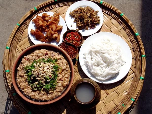 阿昌族還喜歡吃竹筍、竹蛆和蜂蟲、蜂蛹等。竹筍的吃法有鮮竹筍、干竹筍、腌酸筍等。鮮竹筍肉嫩細(xì)香,可當(dāng)蔬菜,也可與肉、豆類等炒著吃。竹蛆是一種生在嫩竹中的蟲蛹,色白個(gè)大,肉肥細(xì)嫩。有時(shí)一節(jié)竹子中有數(shù)百條,取出后用油炸脆,色澤金黃,撒點(diǎn)鹽而吃,是一種高蛋白鮮美食品。食用的蜂蟲、蜂蛹主要有黃腰蜂、夜時(shí)蜂、草蜂等土蜂類的蛹和幼蟲。或炸或炒,香脆可口,營養(yǎng)豐富。