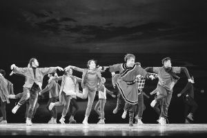 《我們看見(jiàn)了鴻雁》既表達(dá)了“深扎”精神對(duì)藝術(shù)創(chuàng)作的重要性,也反映了青年舞蹈工作者的精神傳承。“鴻雁”是駕鶴歸去的賈作光,也是活在當(dāng)下城市中的青年人。他們雖然不穿蒙古袍、不踩蒙古靴,但他們的心靈深受民族文化的熏陶,印刻著永不褪色的文化記憶。他們走在新時(shí)代遼闊的天地間,步伐穩(wěn)健,心有藍(lán)天。