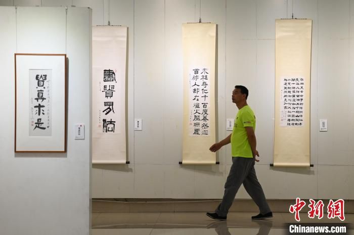 圖為觀眾在書法展上拍照留念?!『闻罾?攝