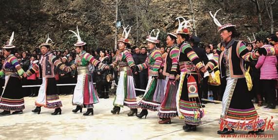 云南省楚雄彝族自治州永仁縣彝族賽裝節(jié)上的“一片紅”。