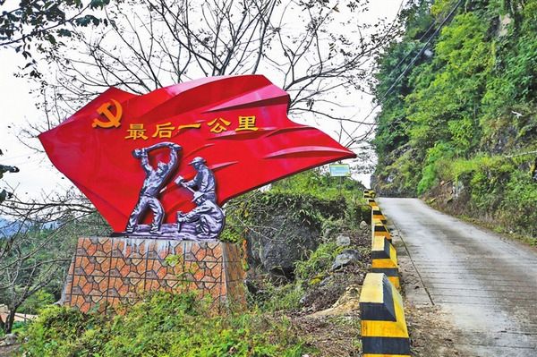 西灑鎮(zhèn)巖頭村,道路旁高聳的峭壁上鐫刻著兩個鮮紅大字——“實(shí)干”?!皻v時12年,我們在懸崖峭壁上硬生生劈出了4米寬進(jìn)村路!”村民小組長李華明說,現(xiàn)在正與村民謀劃開辦“最后一公里”農(nóng)家飯莊,村里的“最后一公里”展覽館也正在建設(shè)。
