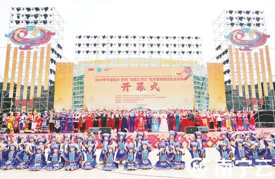2021年中國壯鄉(xiāng)·武鳴“壯族三月三”歌圩暨駱越文化旅游節(jié)開幕式現場。記者葉子榕 攝