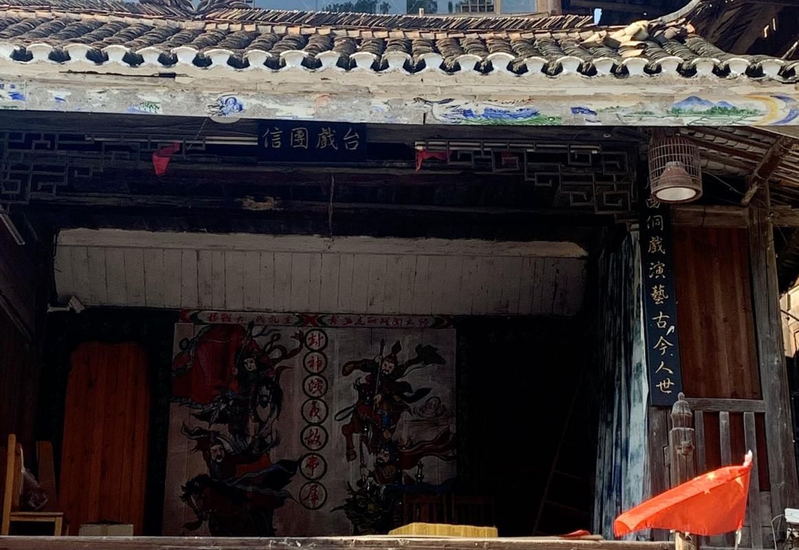 戲樓又稱戲臺,是侗族人演唱侗戲的場所,大多位于鼓樓附近。戲樓造型與侗族民房類似,用杉木建成,戲臺離地進(jìn)兩米,前敞后封,后臺間壁留有兩個邊門,供演員出入之用。