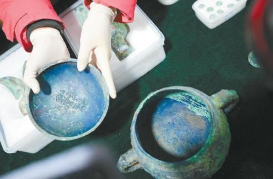 在發(fā)掘中,考古工作者還發(fā)現(xiàn)了一件趣事。M1901號墓葬新出土的銅簋與40多年前出土的圉簋紋飾相同,器蓋內(nèi)銘文為“白(伯)魚作寶尊彝”,器內(nèi)底銘文則有“王賜圉貝,用作寶尊彝”字樣?!皳?jù)銘文推斷,這兩件簋的蓋、身在下葬時應(yīng)是混淆了,一錯3000年?!蓖蹙дf,時隔40余年,兩器重聚首,也證明了(伯)魚和圉實為同一人,對于西周的名、字制度研究,增加了確鑿的證據(jù)。同時,該墓葬新出土的青銅面具、獸面形銅飾、成組的銅車馬器、鏤空有銎銅戈,紋飾精美、細節(jié)豐富,均為首次發(fā)現(xiàn)。M1903號墓葬出土了多件漆器,包括三角紋簋、豆等,“漆器的發(fā)現(xiàn),彌補了上世紀現(xiàn)場文物保護技術(shù)有限的遺憾,對于墓葬隨葬器用制度的研究具有重要意義。”