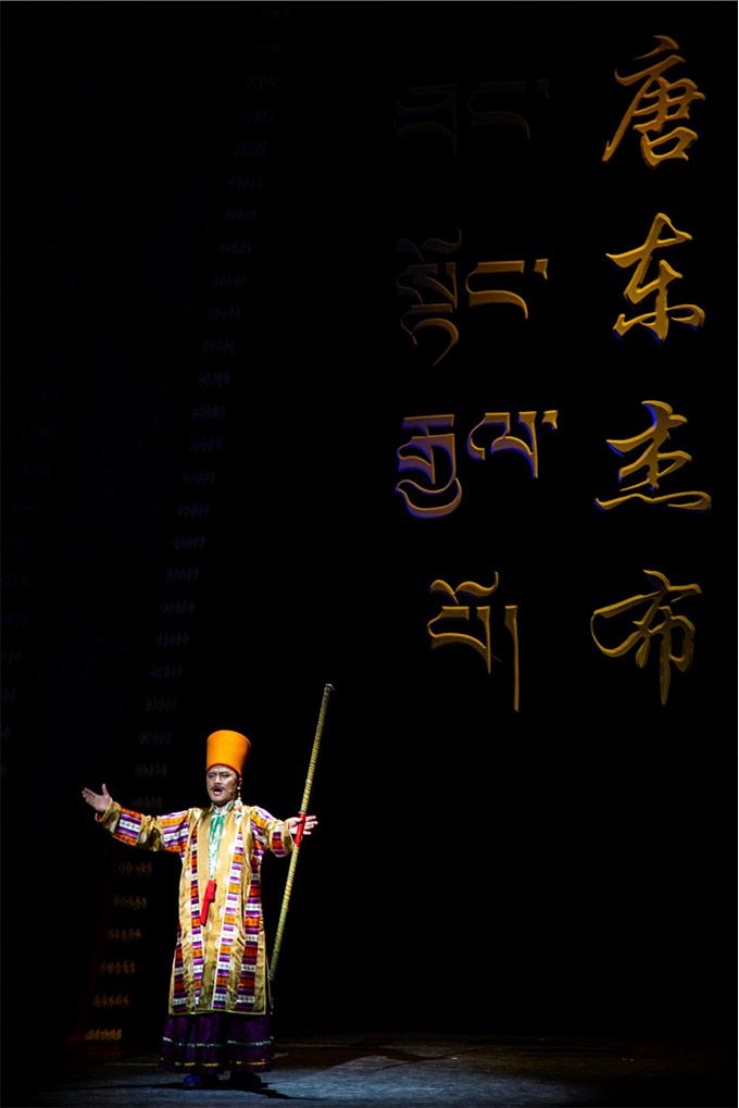 南木特藏戲已有400年的歷史,面對這樣一個彌足珍貴的“中國戲曲活化石”,主創(chuàng)人員對創(chuàng)作主題和表現(xiàn)形式斟酌再三,最后選定以“生命的奉獻(xiàn)”為創(chuàng)作起點(diǎn),將《唐東杰布》以“老戲新唱”的形式呈現(xiàn)給觀眾。