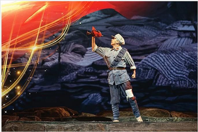 《花兒與號(hào)手》是一部以紅軍長(zhǎng)征路過(guò)六盤(pán)山為背景創(chuàng)作的音樂(lè)劇,全劇展現(xiàn)了長(zhǎng)征路上紅軍戰(zhàn)士的理想信念和“長(zhǎng)征是宣言書(shū)、是宣傳隊(duì)、是播種機(jī)”這一核心思想,弘揚(yáng)了中國(guó)共產(chǎn)黨百年征程中展現(xiàn)出的無(wú)私無(wú)畏的革命精神。