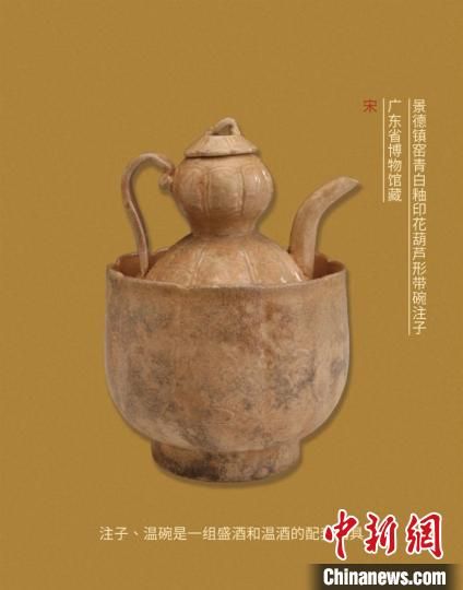 宋景德鎮(zhèn)窯青白釉印花葫蘆形注子碗 廣東省博物館 供圖