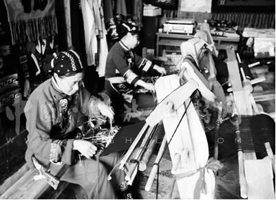 在這些土家女人手上,一架織錦機(jī),就是一個大千世界,它能真實(shí)或者夸張地織出存在于山上田野的所有物像。雖然她們的文化水平不是很高,卻能創(chuàng)造出一些很抽象的西蘭卡普圖案。有時,我更愿意這樣說:西蘭卡普是一種與人俱存的藝術(shù)。
