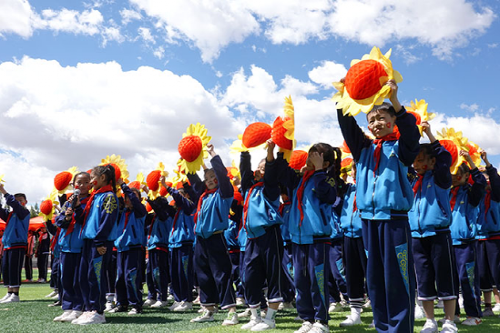 土默特左旗民族中學(xué)學(xué)生在運動會上表演。(玉榮 供圖)