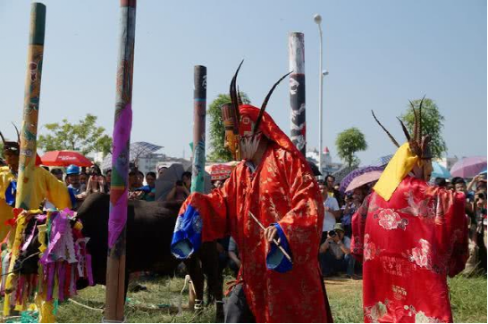 過節(jié)前一天,要“椎殺”一頭公牛,用牛頭、牛尾、牛腳、牛內(nèi)臟祭龍。祭時(shí)有法師喃經(jīng)、跳神。牛肉則分給各家各戶或拿到市上出賣,收入作為節(jié)日費(fèi)用。祭龍后二三天,各戶自拜祖先、三界仙、灶王、地主娘娘等,也是求神靈保佑五谷豐登。又用糯飯、粉蒸肉喂牛,以酬謝它耕作的辛勞,并給牛放假一天,讓它好好休息。嫁出去的女兒則帶上子女和禮品回娘家過節(jié),親戚朋友也常常登門賀節(jié),青年男女則盛裝聚會(huì)唱歌,選擇知音?,F(xiàn)在過此節(jié),宗教迷信活動(dòng)多已廢棄。增加了文體競賽或者開展有關(guān)生產(chǎn)生活方面的科普活動(dòng)等。