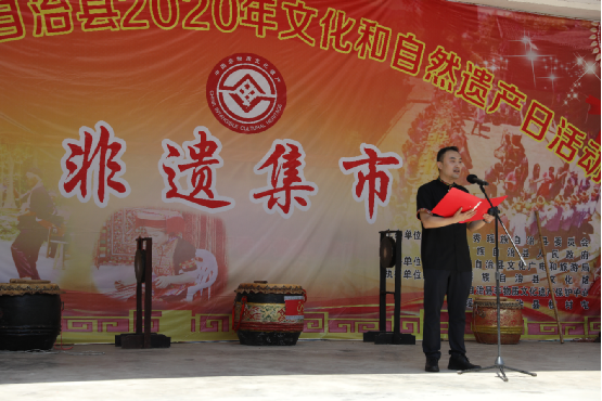金秀瑤族自治縣人民政府副縣長馬峰在“非遺集市”開幕式上致辭