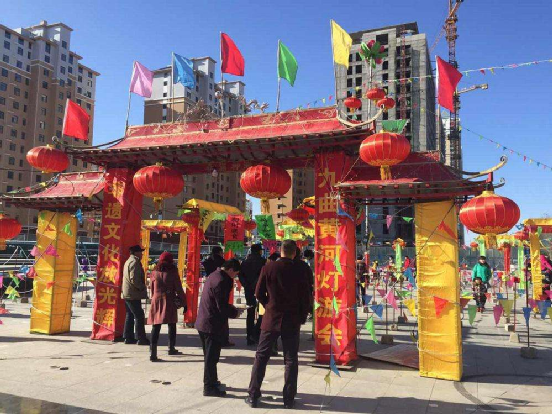 燈游會(huì)多在元宵節(jié)舉辦。舉辦燈游會(huì)的方法是:選擇約6O平方丈大的平坦廣場(chǎng),栽置360根高約1.5米的木桿。木桿縱橫有序,形成九個(gè)方形燈陣,曰“九曲黃河陣”。每根本桿頂上安一 盞彩燈。燈陣中央栽一根10多米高的木桿,頂端置一盞最大最高的明燈,曰“老桿兒”。燈陣設(shè)有入口和出口兩個(gè)大門(mén),九個(gè)燈陣的出口處各留一個(gè)小門(mén)。游“九曲黃河陣”者從入口進(jìn)入,沿著布滿(mǎn)疑點(diǎn)的彎彎曲曲路線(xiàn)走下去,可游遍整個(gè)燈游會(huì)場(chǎng)。舊時(shí)傳說(shuō):人們游至“老桿兒”時(shí),如擁抱“老燈桿,可消災(zāi)免禍,增福添壽,吉祥如意。游者如果不知“九曲黃河陣”中的奧妙,轉(zhuǎn)來(lái)復(fù)去,象陷入迷魂陣一般無(wú)法走出,故驅(qū)使人們好奇而入,迷陣陷身,觀者大笑,趣味橫生。