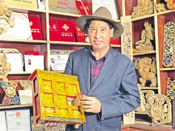 2018年,他被評為拉薩市非物質(zhì)文化遺產(chǎn)項目“拉薩木雕技藝”市級代表性傳承人。