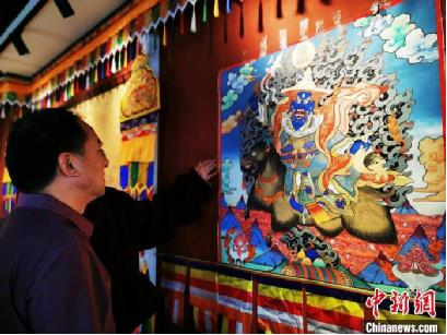 圖為久美尖措創(chuàng)作的藝術(shù)品。 張?zhí)砀?攝