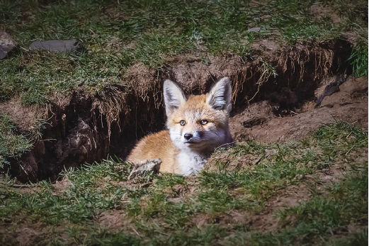 不知不覺中,太陽已經(jīng)下山了。面對(duì)三只小家伙從警覺、驚喜、歡快到煩躁、無奈、焦慮的神態(tài)變化,我對(duì)記錄了小赤狐一天的喜怒哀樂而高興,又為小赤狐整整一天的忍饑挨餓而擔(dān)憂,趕緊收拾攝影器材,撤離它們賴以生存的家園,還它們一個(gè)不被打擾的寧靜……