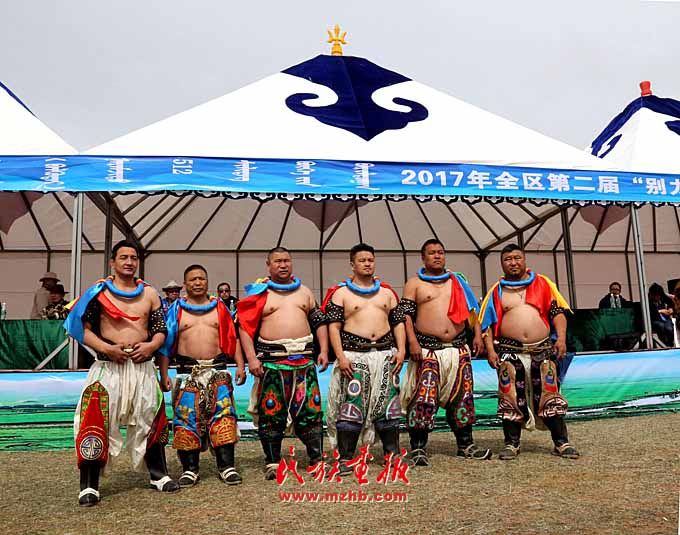 中國(guó)選手首... 圖為搏克選手入場(chǎng) “鄂爾多斯鄂爾奇”第四屆國(guó)際蒙古... -