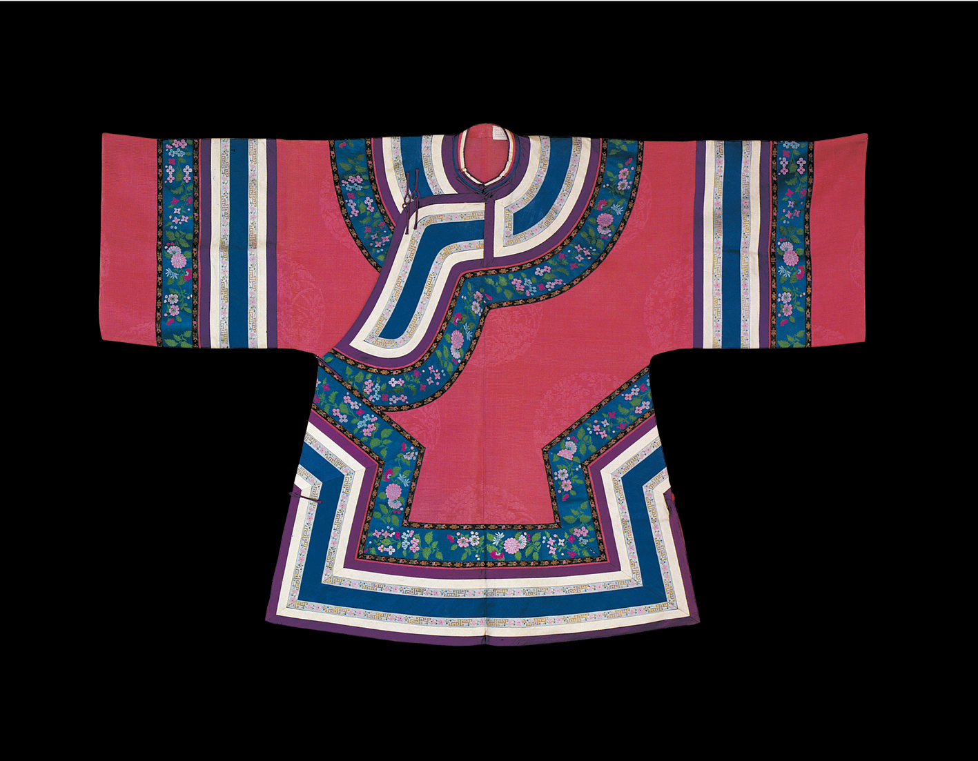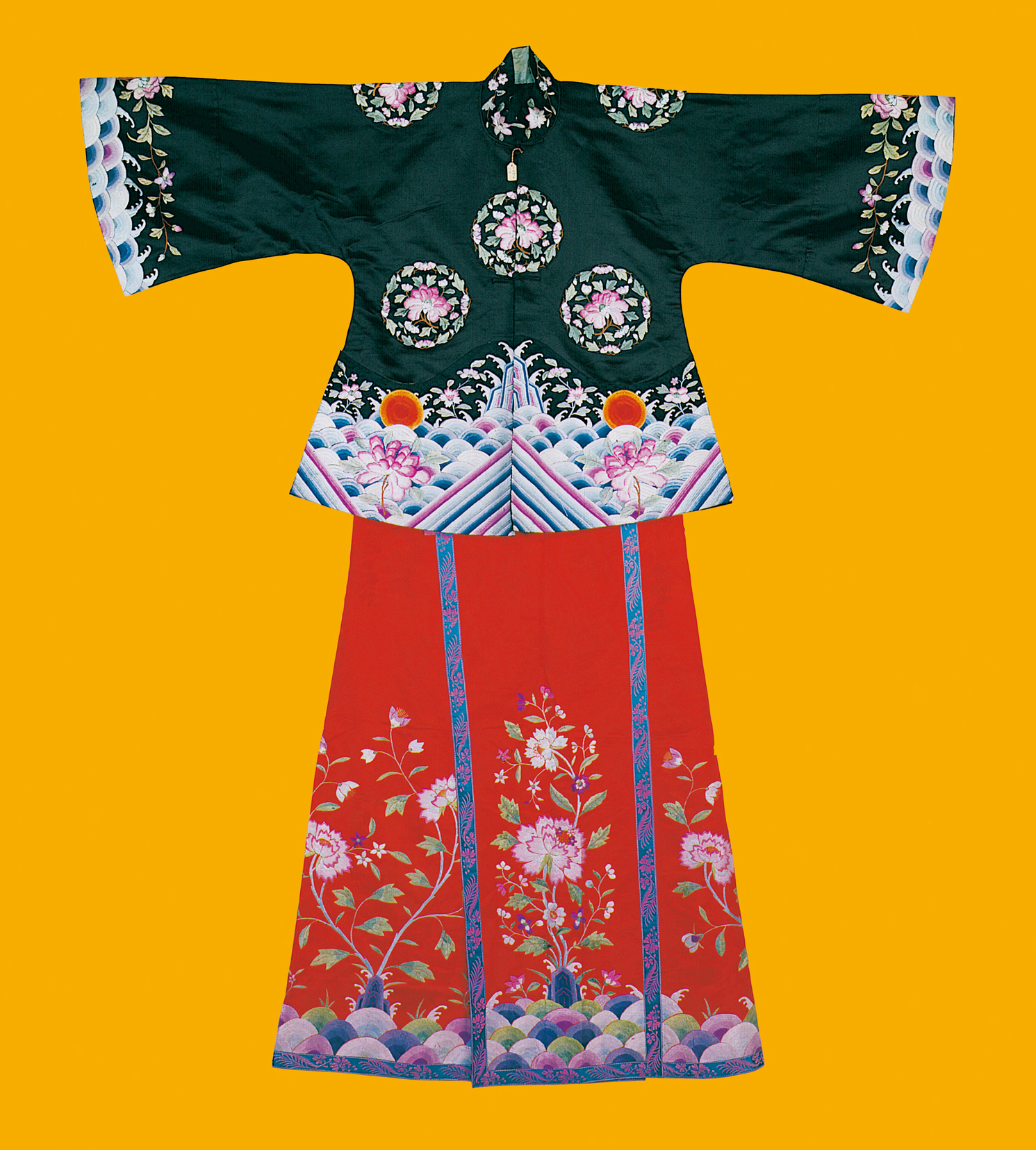 元代,作為民族大融合和中外文化大交流時期,長衣統(tǒng)稱為袍,其樣式南北方差異不大,但材料貴賤精粗,卻差距懸殊。漢族男性發(fā)式變化不多,但北方的漢族女性發(fā)式較前簡化。在元朝并沒有完整的冠服制度。蒙古人入主中原后仍保持其生活習俗,但同時又受漢族的影響,服飾日趨華麗。在大宴活動中,天子百官要穿統(tǒng)一顏色的服裝,稱為“質(zhì)孫服”,其形為袍襖狀,與漢族深衣相近(圖為漢族清代牡丹紋緞繡女裝,中央民族大學民族博物館館藏)。
