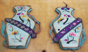 展覽展出的民國(guó)時(shí)期的繡花布瓶袋。 本報(bào)記者牛銳攝