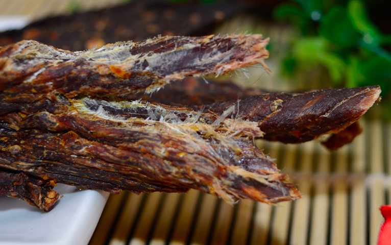 四川、云南等地的藏族多將豬肉制成豬膘。制豬膘時(shí),去掉豬的頭蹄,剔除豬骨,四川的藏族還要割下瘦肉,然后抹上花椒、香樟籽,撒上鹽,縫合成方形,風(fēng)干即可。云南藏族在將豬肉縫合之后,還要加一塊重石板壓,稱“琵琶肉”。食用時(shí)一圈圈切下,蒸熟后用刀切食。肉類的儲(chǔ)存多用風(fēng)干法。一般在入冬后宰殺的牛羊肉一時(shí)食用不了,多切成條塊,掛在通風(fēng)處風(fēng)干。冬季制作風(fēng)干肉,因氣溫低,既可防腐,又可使肉中的血水凍附肉中,保持肉的營(yíng)養(yǎng)和風(fēng)味。云南藏族稱這種風(fēng)干肉為牛羊干巴。