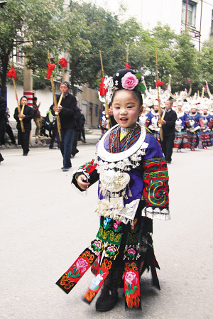 苗族小姑娘也盛裝迎苗年
