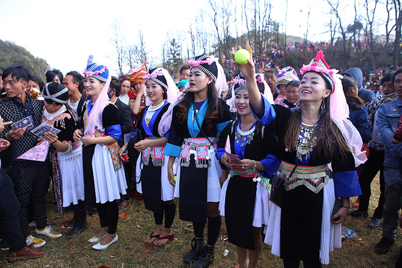 由于在歷史上經(jīng)歷長時間、大范圍的遷徙,苗族文化形成了較強的環(huán)境適應(yīng)能力和流動變遷特征。節(jié)日作為民族文化的凝集點,慶祝方式和形態(tài)也處于動態(tài)的演變和傳承之中。在大布紅的花山場,一個從老撾過來的苗族女子樂隊讓當(dāng)?shù)氐拿缱迦烁械胶闷妗f著同樣的西部苗語,卻穿著略顯不同的衣服。她們排成一行,教人們一來一往地扔繡包,一時間圍觀者無數(shù)。不消多久,女子樂隊手中的CD就在人群中銷售一空。