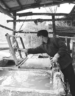 石橋古法造紙需經(jīng)過(guò)繁雜的工序