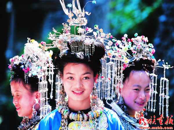 貴州榕江侗族少女頭飾 盧現(xiàn)藝攝影 引自民族畫報