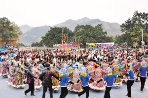 2012年12月18日,貴州省榕江縣2000多名少數(shù)民族同胞盛裝出行,歡慶薩瑪節(jié)?!八_瑪”是侗族母系氏族社會時(shí)的女英雄,侗語意為“大祖母”。薩瑪節(jié)被譽(yù)為“侗族的婦女節(jié)”。2006年,侗族薩瑪節(jié)被列入第一批國家級“非遺”名錄。