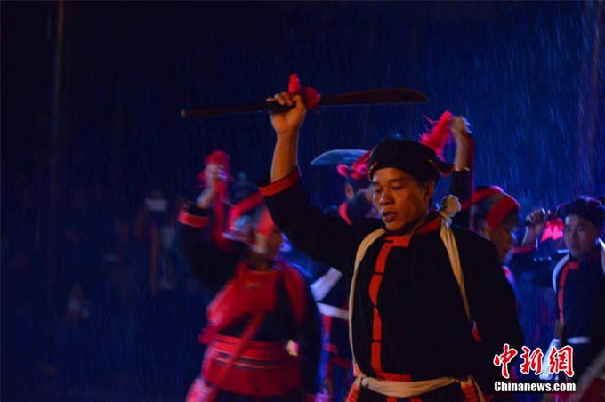 12月6日夜晚,在中國瑤族之鄉(xiāng)廣西金秀瑤族自治縣的盤王節(jié)上,當(dāng)?shù)噩幾灏傩胀ㄟ^祭盤王、還盤王愿,祈求風(fēng)調(diào)雨順、五谷豐登