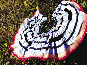 白褲瑤服飾的面料都是老阿婆手搖紡車,把一捆捆棉麻用勤勞智慧的巧手紡織成細紗,合著穗捻成勻稱的線。阿妹們再將線繞到線筒上,然后輕涮漂洗,繞到高腳糧倉下。線晾干后進行紡織,一塊塊自紡的棉紗土布就形成了,之后就可以在這塊布上盡情“作畫”了。