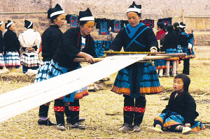 白褲瑤女人勤快的名聲,早就傳遍了山里山外。祖祖輩輩,人們所用的布料,所穿著的衣衫褲子,無(wú)不是白褲瑤女人自己種、自己紡、自己織、自己縫、自己畫、自己染和自己繡出來(lái)的。
