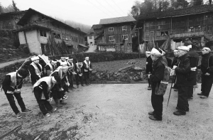 懷著對“度戒”的好奇和向往,從1月1日開始,盤文儀和其他 “受戒者”一道經(jīng)歷了起法名、請師傅、豎刀梯等十多天的緊張準(zhǔn)備。之后,在師傅的帶領(lǐng)下,連續(xù)三天三夜馬不停蹄地進(jìn)行了封齋、架龍門、掛神像、接香、接圣、請圣、點(diǎn)大羅明燈、游兵等儀式。同時(shí),通過聽師傅頌讀經(jīng)文,接受了族史、族規(guī)、禮儀、道德等傳統(tǒng)教儀,還經(jīng)歷了上刀梯、抓燒紅的犁頭、踩燒紅的磚頭等考驗(yàn),最終成功過關(guān)。