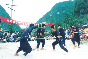 日前,廣西大化瑤族自治縣七百弄鄉(xiāng)和東蘭縣三弄瑤族鄉(xiāng)的布努瑤同胞分別舉行隆重的活動,慶祝自己的民族傳統(tǒng)節(jié)日“祝著節(jié)”?!白V?jié)”,亦稱祖娘節(jié)、二九節(jié)、盤古節(jié)或瑤年,是瑤族人民隆重的節(jié)日之一。這天,布努瑤同胞表演了一臺臺古色古香的文藝節(jié)目。當?shù)馗髯迦罕姾团忇l(xiāng)鎮(zhèn)的農(nóng)民朋友也匯集一堂,和布努瑤兄弟姐妹一道慶賀這個盛大的民族節(jié)日。