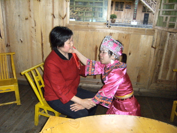 哭嫁歌內(nèi)容有“母女對(duì)哭”“嫂妹對(duì)哭”“姐妹對(duì)哭”“哭離娘席”“哭別祖宗”“哭兄弟”“哭梳頭”“罵媒人”“哭上轎”等,甚至還有同村同齡未婚姑娘的群哭——“哭十姊妹”??藜薷柙从谕良易骞媚锍黾耷暗目藜拗祝绞桥R近婚期,哭聲越悲,甚至通宵達(dá)旦。2010年,“土家族哭嫁歌”已被列入第三批國(guó)家級(jí)非物質(zhì)文化遺產(chǎn)名錄。