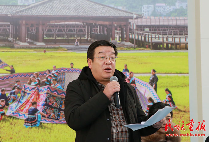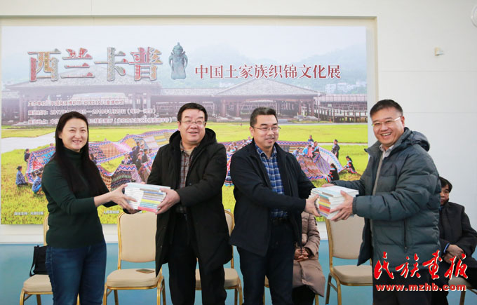 會上中國民族博物館黨委副書記、副館長張志文向少數(shù)民族作家們介紹了展覽,他說:“土家族是一個歷史悠久的民族,現(xiàn)在有835萬人口。土家織錦也有兩千多年的發(fā)展歷史,有250多種傳統(tǒng)圖案,是中國民間五大織錦之一,堪稱中國服飾文化中的奇葩。中國民族博物館從歷年征集收藏的300多幅清代以來的土家織錦中,選取了156幅精品土家織錦、21分鐘傳承人視頻和120余幅土家民族風(fēng)情照片。我們和中國婦女兒童博物館合作舉辦了這個高品質(zhì)的專題展,旨在傳承和弘揚土家族國家級非物質(zhì)文化遺產(chǎn)?!?/p>