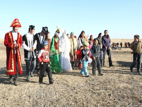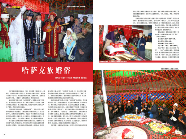 哈薩克族婚禮要經(jīng)過說親、訂婚、吉爾特斯(展示彩禮)、送彩禮、出嫁和迎親等一系列儀式。每次儀式中贈(zèng)送的禮品,按傳統(tǒng)習(xí)俗都少不了馬匹,每次宴請(qǐng)都必有新鮮、肥美的羊肉,迎親隊(duì)伍也是騎馬牽駝,一路歌聲,過程復(fù)雜隆重、熱烈而又歡快。